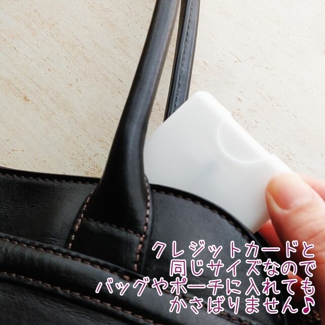 また、スプレーボトルはお洒落なカード型タイプで、持ち運びも簡単です。